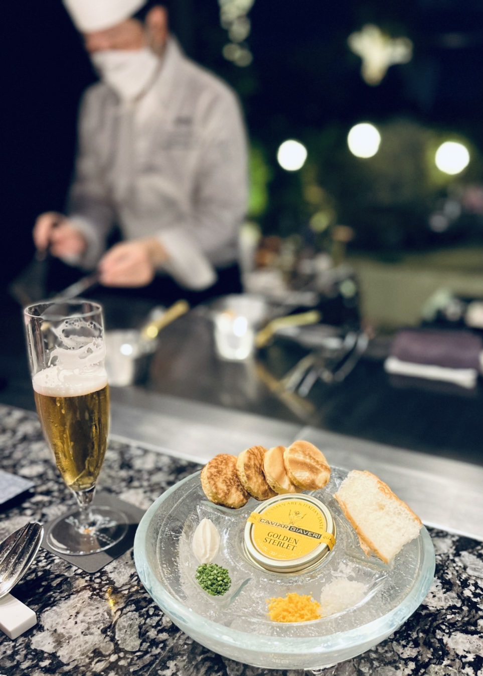 味は一般的な黒いキャビアと比べて、味が芳醇で、薫りがしっかり鼻から抜けて、余韻だけ永く優しく残る感じ.....。