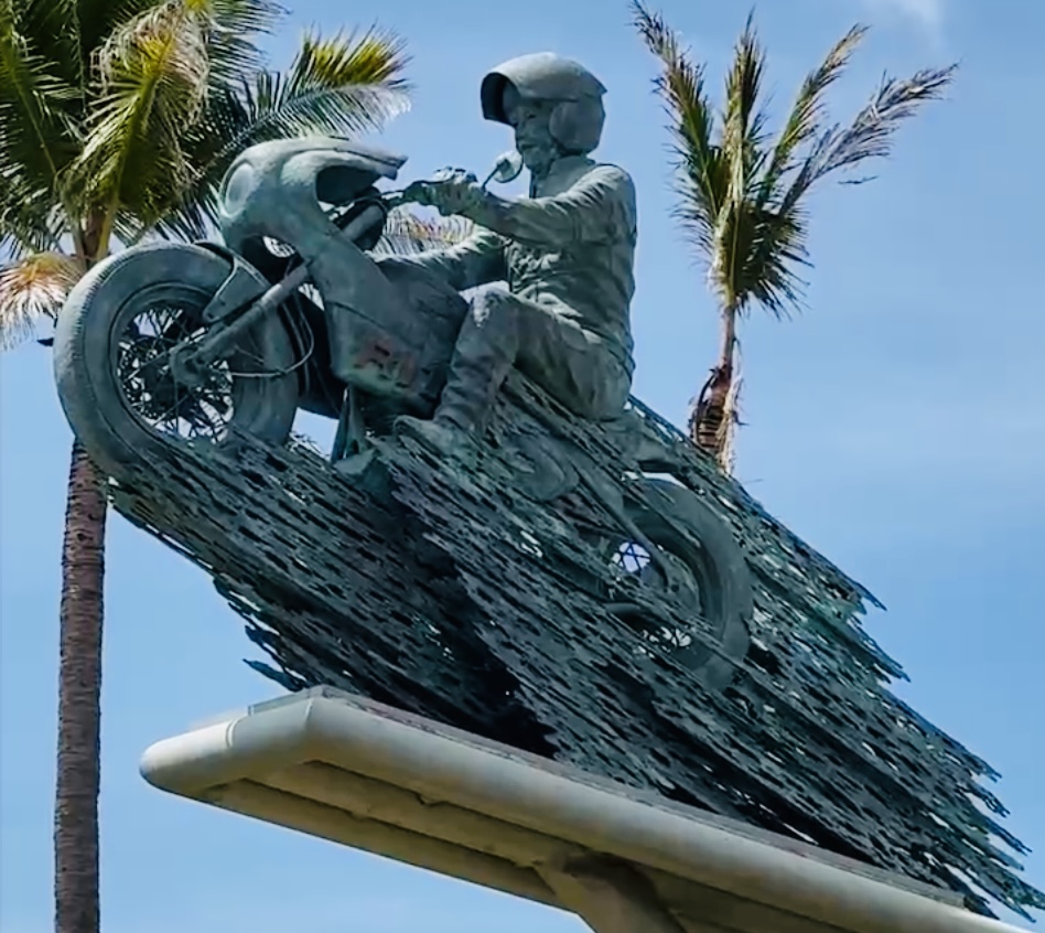 空を駆けてるような銅像を