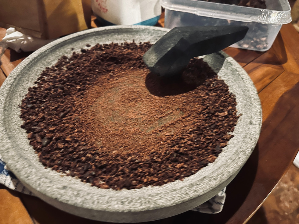 そのカカオニブをすり潰します