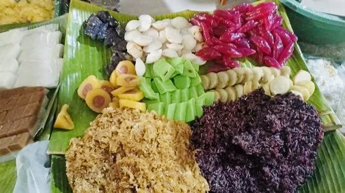 インドネシアの伝統的なスナックであるこのお菓子は、もち米にすりおろしたココナッツを添え、濃厚な黒砂糖ソースをかけています。歯ごたえのある食感とバナナの葉の独特の香りが特徴的です。